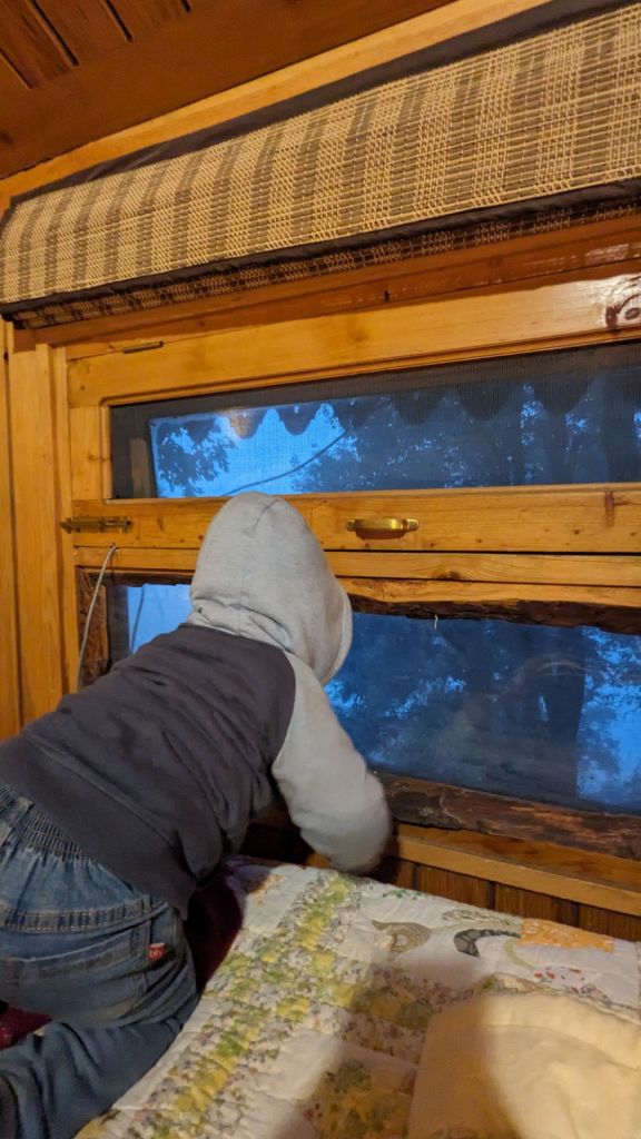 A tiny home made of wooden logs deep into the jungle has always been in our fantasy and we do not remember telling this to anyone but the universe conspires in its ways. We were sipping our ginger lemon honey tea as a welcome drink and Shabana was telling us that the log cabin room was reserved for us, she takes care of the front desk and assists Sunita in day-to-day operations. She guided us to the room and a pleasant smell of wood welcomed us, the interior was themed like a castle and we felt like royals. It was spacious enough for our family of four with 3 beds, an attached bathroom, and a tiny kitchen area. It was so cozy and comfortable that we dropped the idea of going out in the evening and just rested.